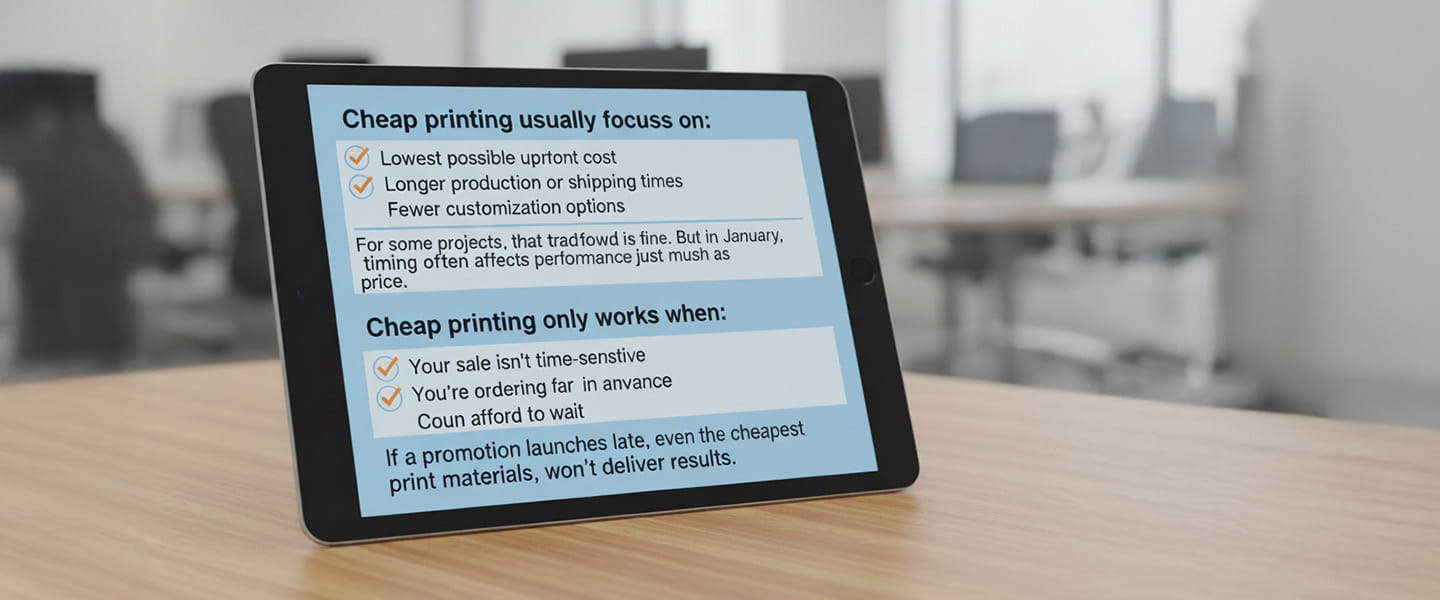 The answer isn’t always obvious. This guide breaks down when speed matters more than price, when cheap printing makes sense, and how to choose the right option for your January sales strategy.