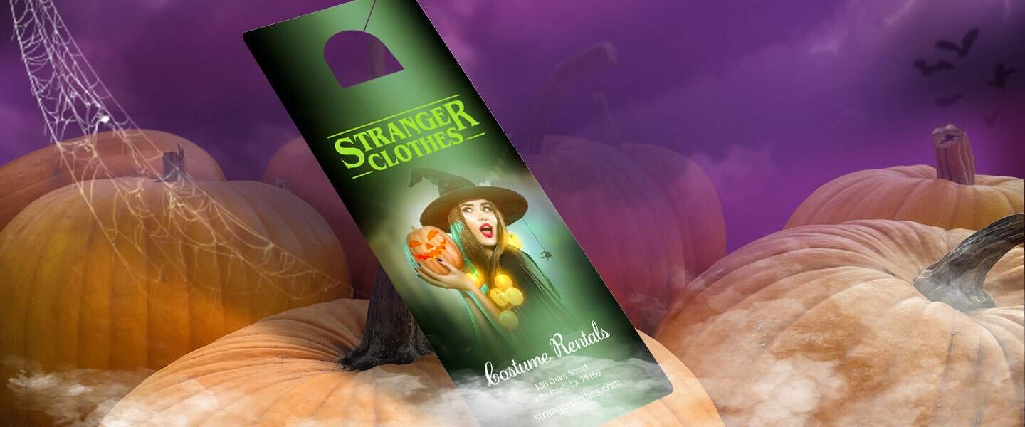 Door hangers are underrated for Halloween promotions, but they shine in neighborhoods with heavy trick-or-treat traffic. A playful hanger with a coupon or invite attached is hard to miss.
