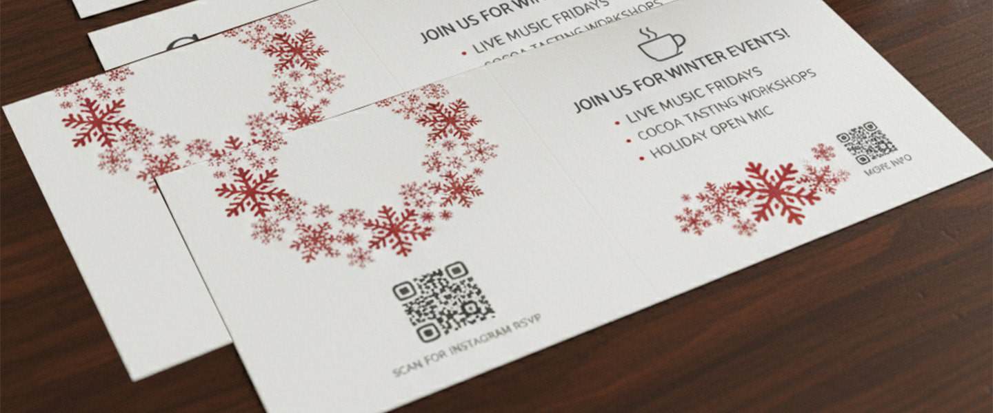 They printed 250 double-sided flyers with red foil snowflakes and QR codes leading to their Instagram RSVP page.