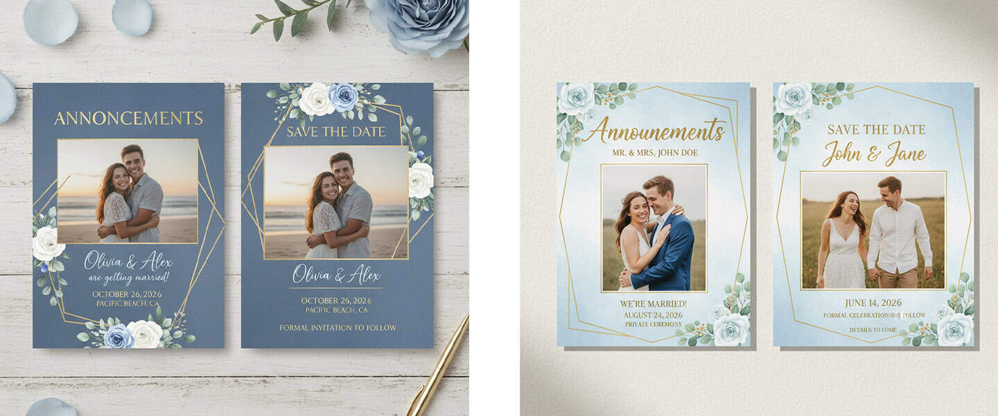 If wedding dates are already secured, some couples combine engagement announcements with Save-the-Dates, although traditionally they remain separate pieces.